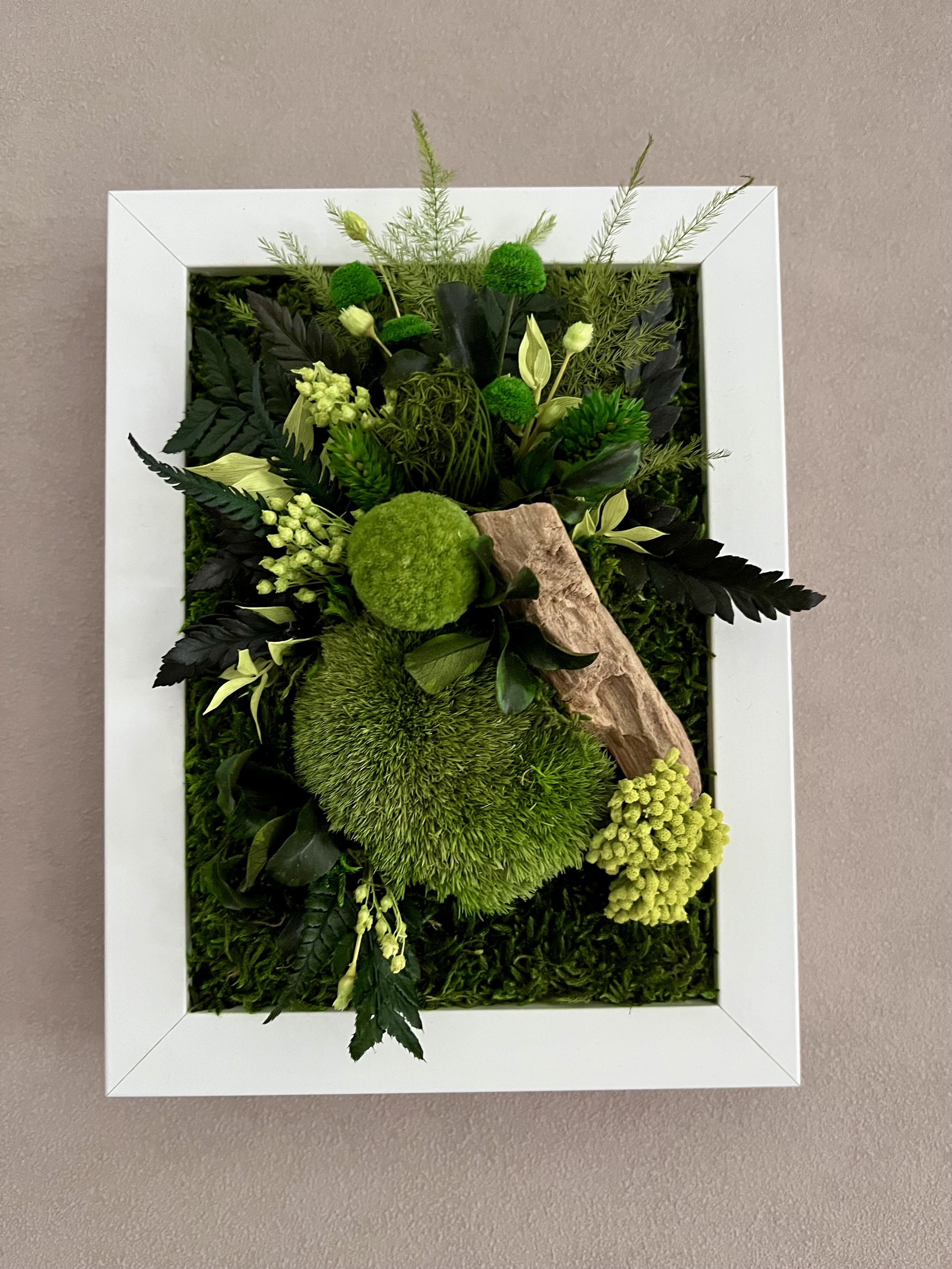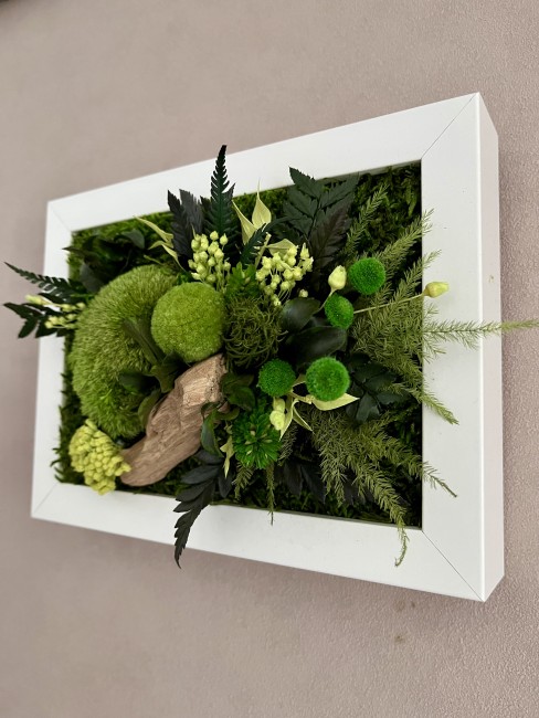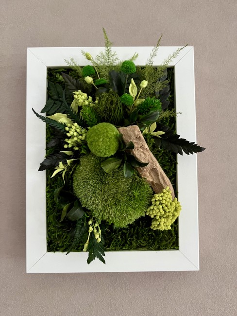 ? Ce tableau ne nécessite aucun entretien et surtout pas d’eau , car ce sont de vrai plantes stabilisées.