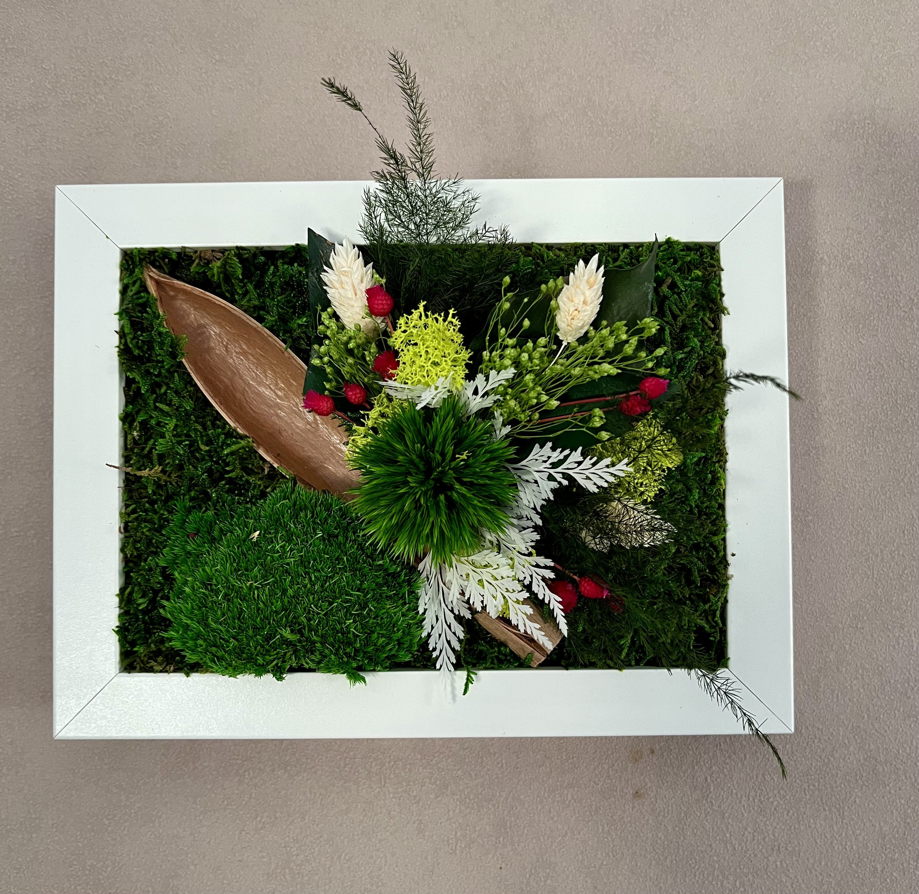 ? Ce tableau ne nécessite aucun entretien et surtout pas d’eau , car ce sont de vrai plantes stabilisées.