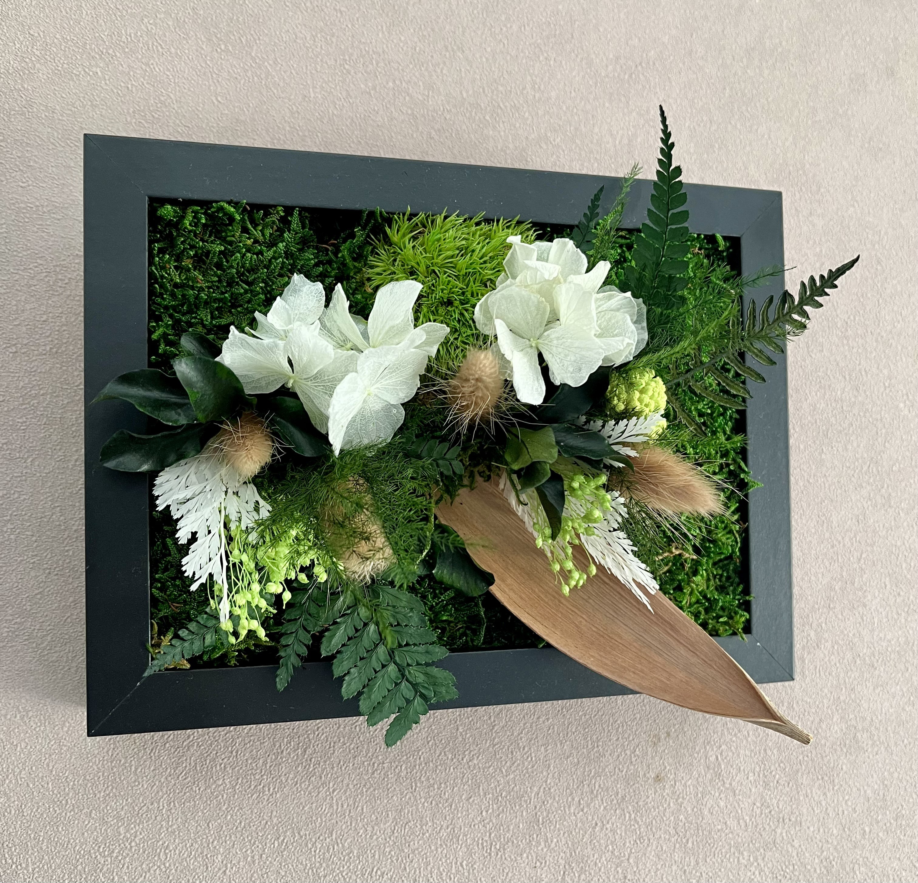 ? Ce tableau ne nécessite aucun entretien et surtout pas d’eau , car ce sont de vrai plantes stabilisées.