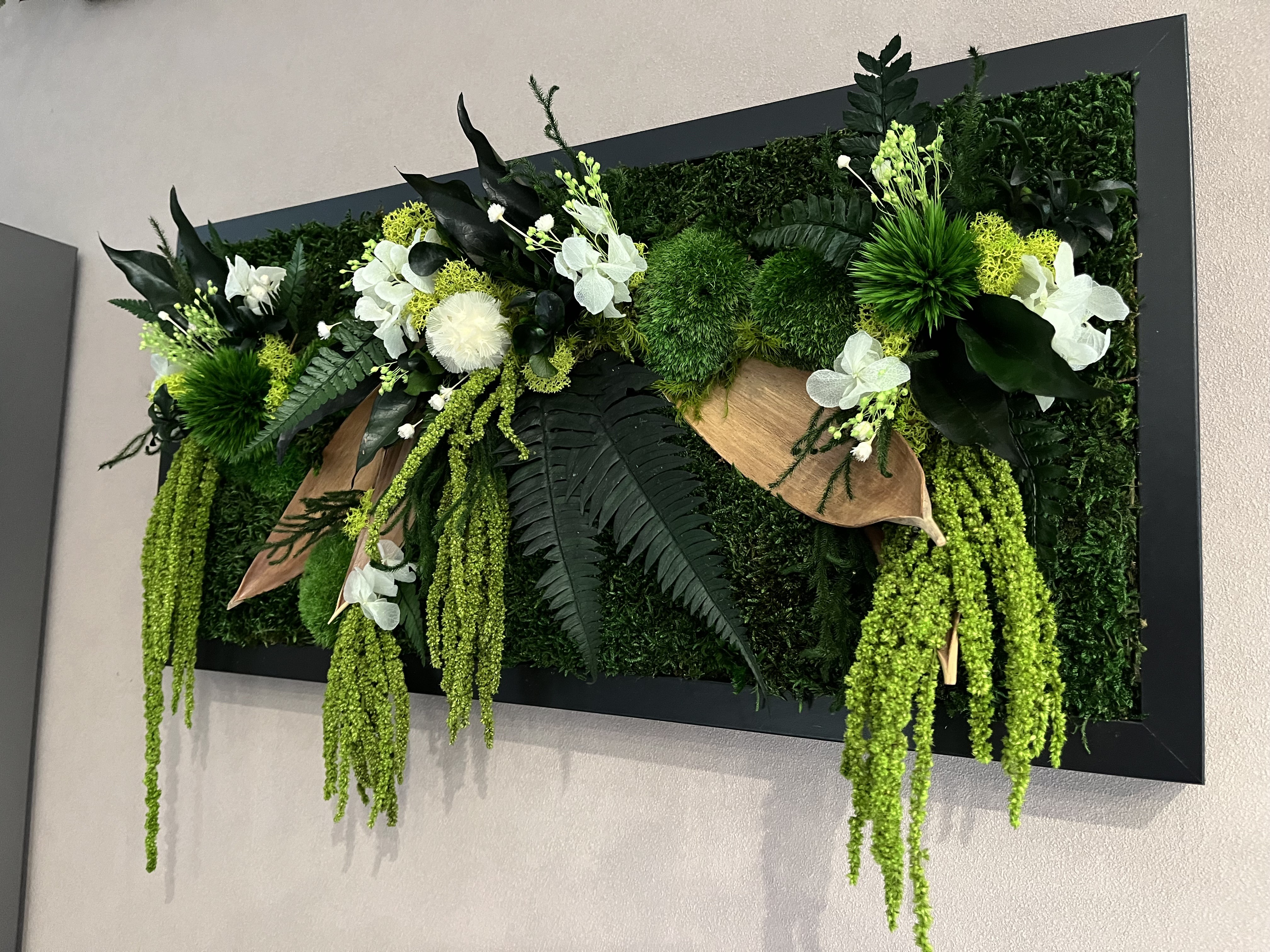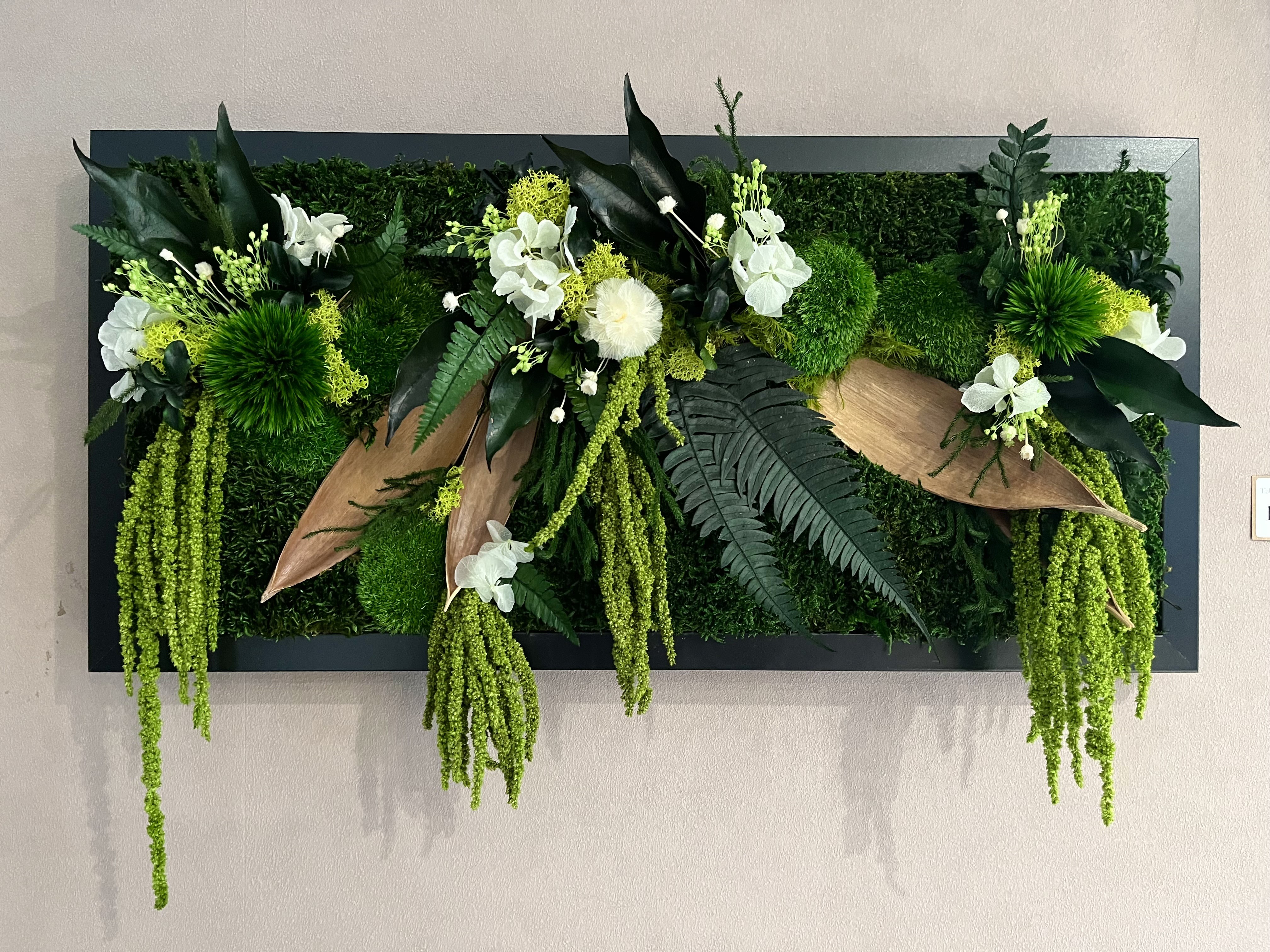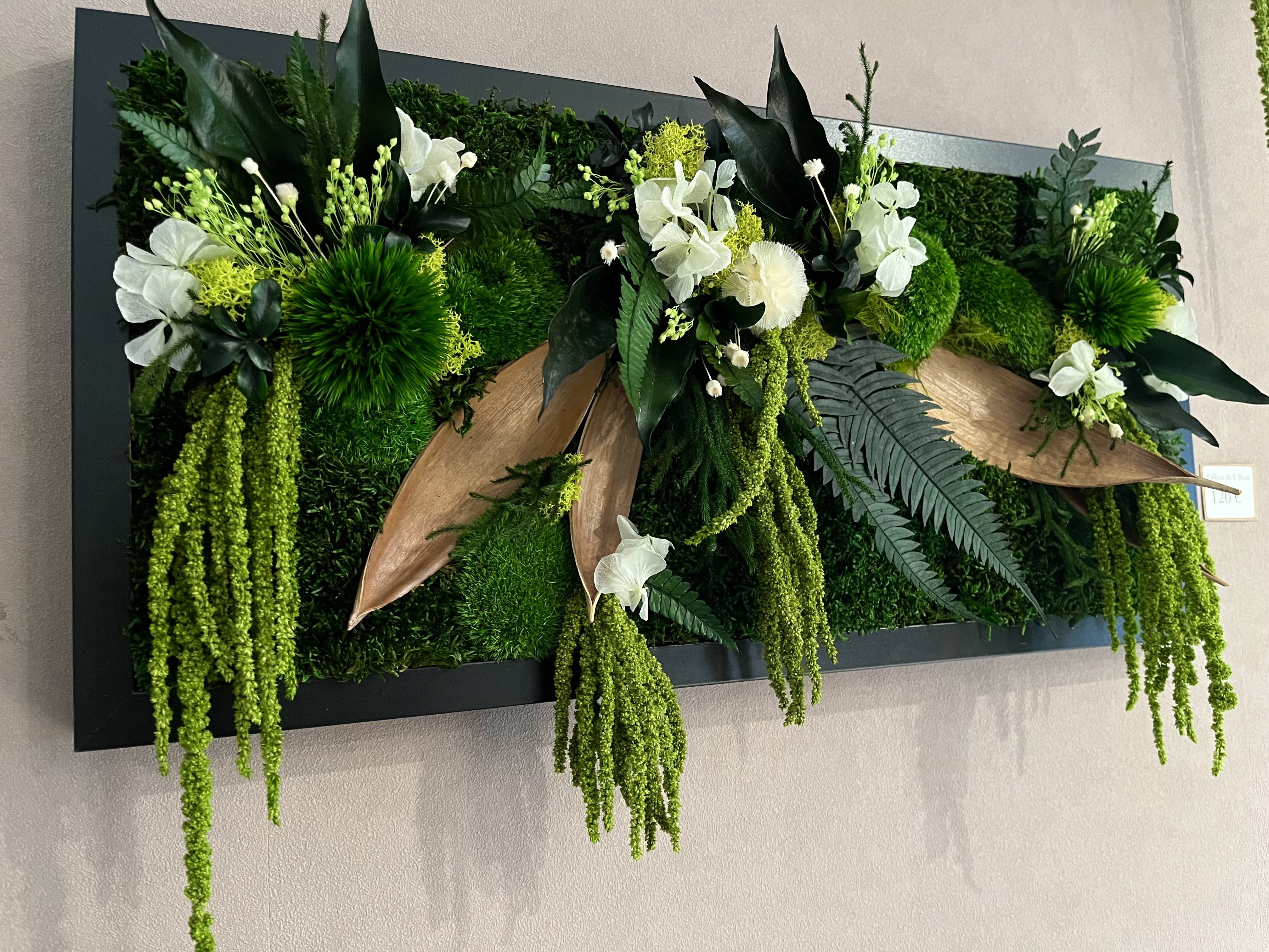 Ce tableau ne nécessite aucun entretien et surtout pas d’eau , car ce sont de vrai plantes stabilisées.