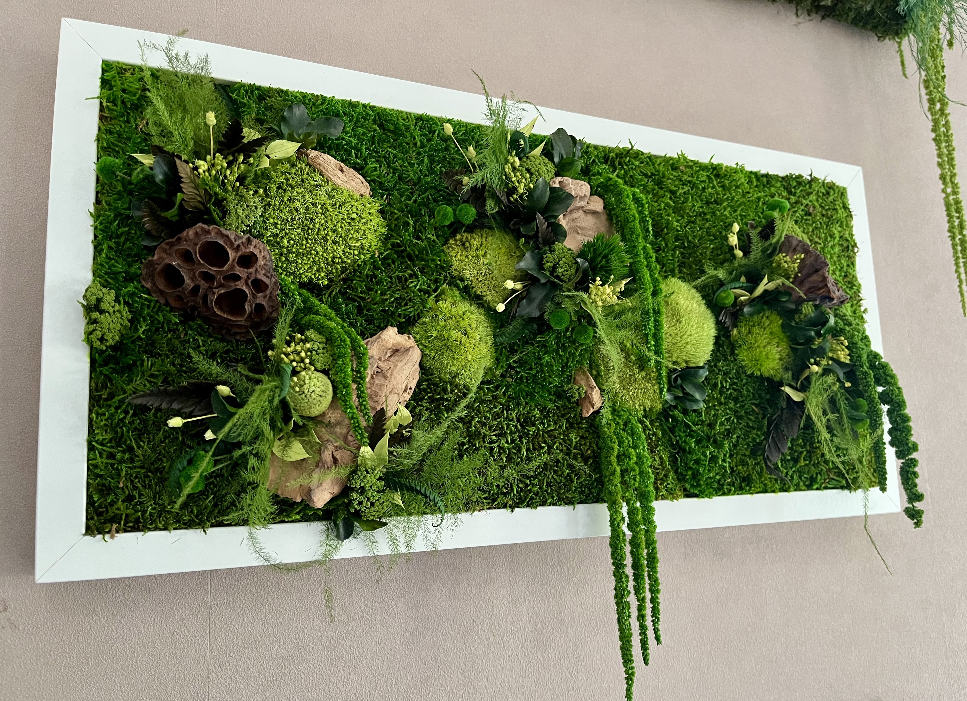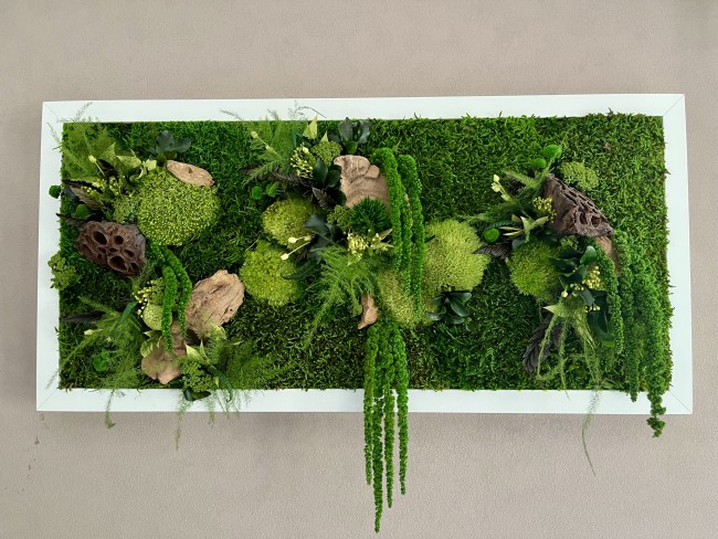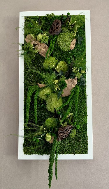 ? Ce tableau ne nécessite aucun entretien et surtout pas d’eau , car ce sont de vrai plantes stabilisées.