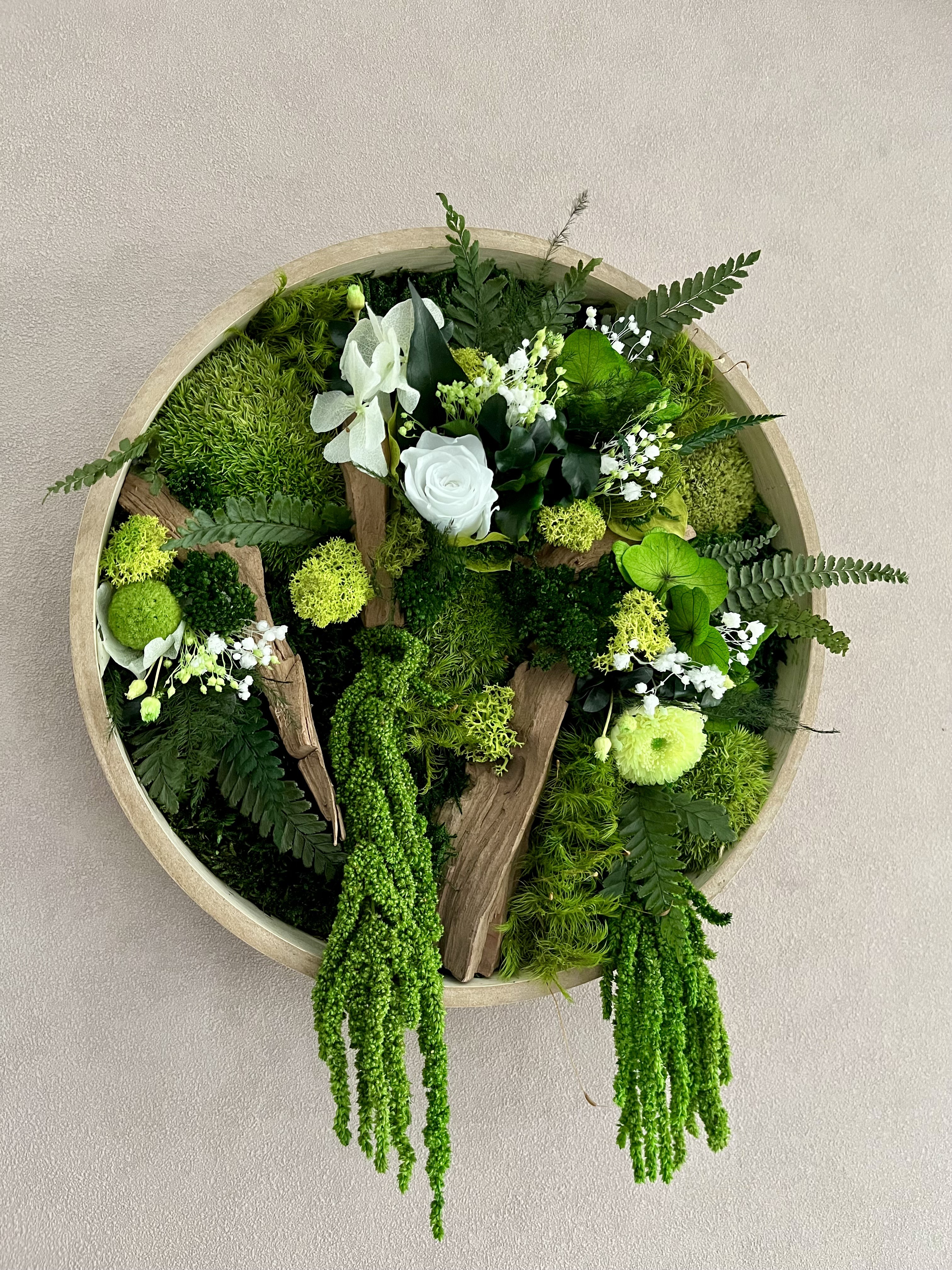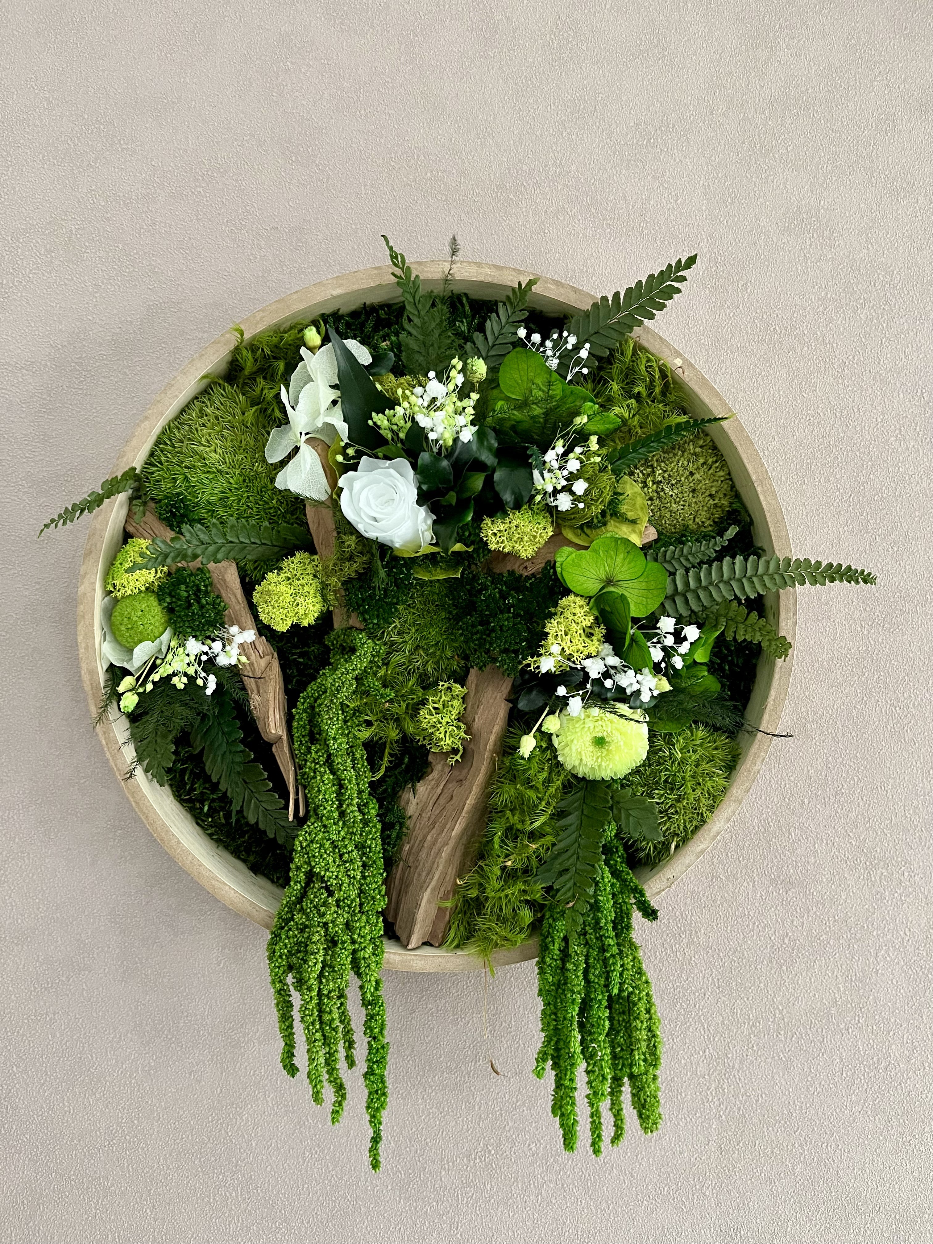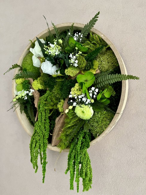 Ce tableau ne nécessite aucun entretien et surtout pas d’eau , car ce sont de vrai plantes stabilisées.