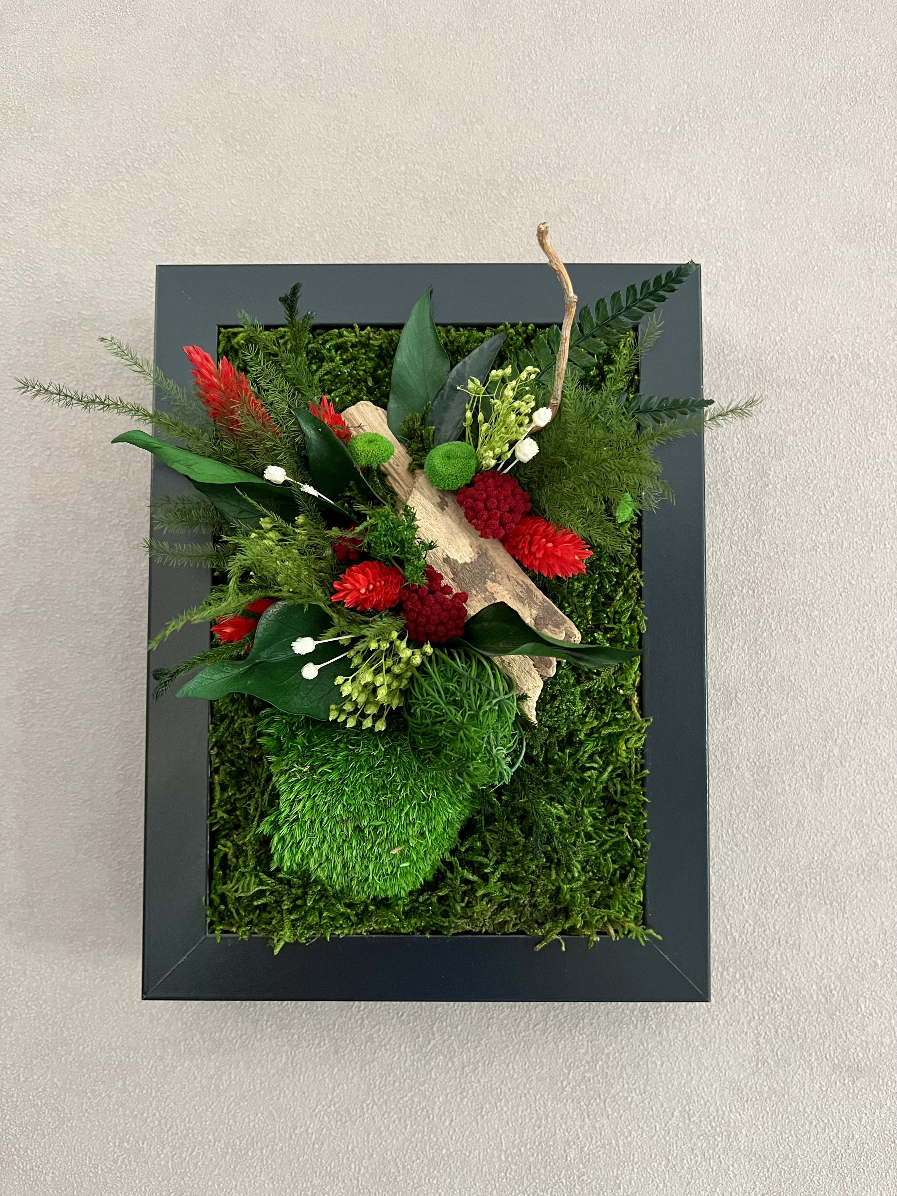? Ce tableau ne nécessite aucun entretien et surtout pas d’eau , car ce sont de vrai plantes stabilisées.
