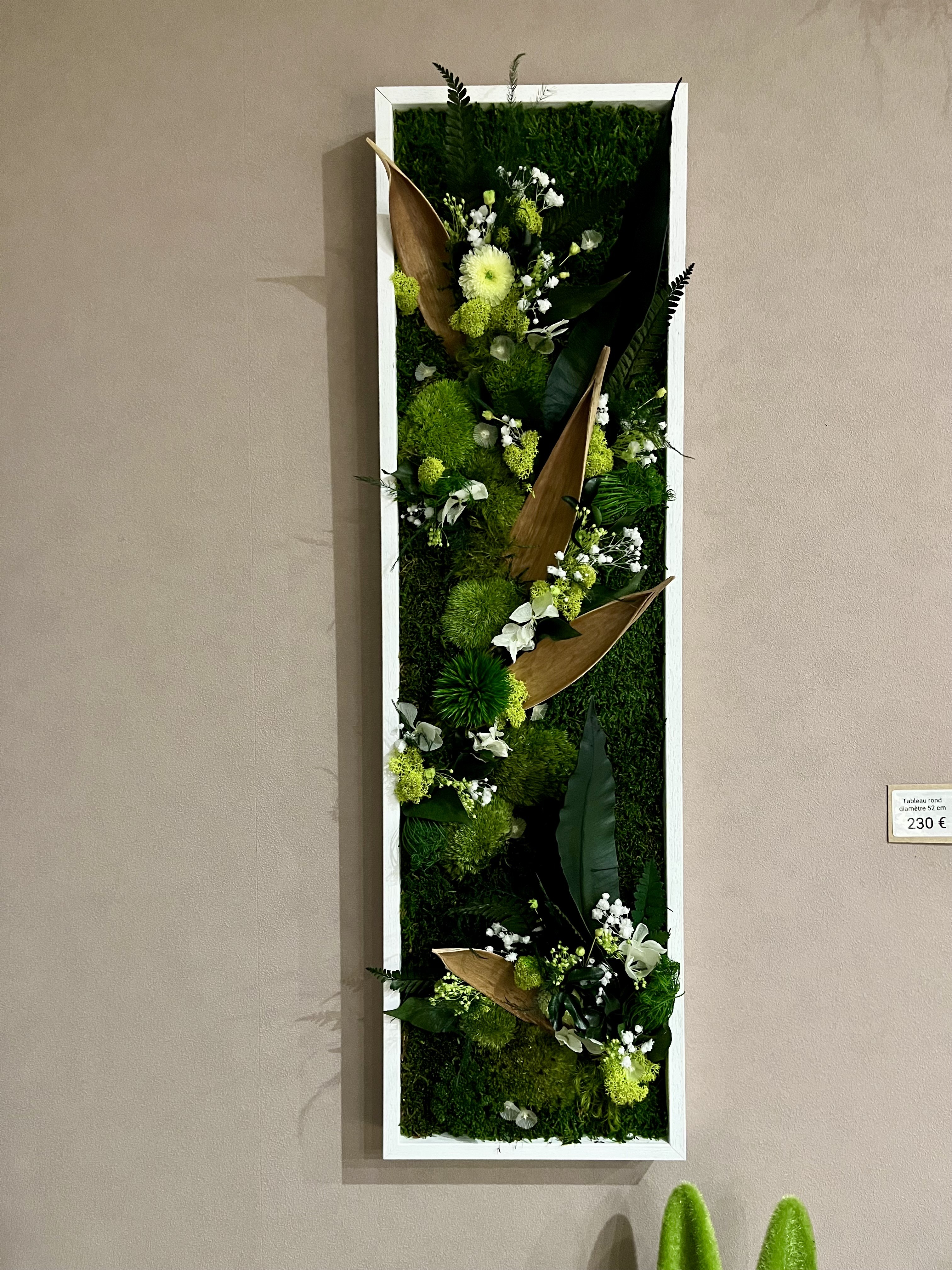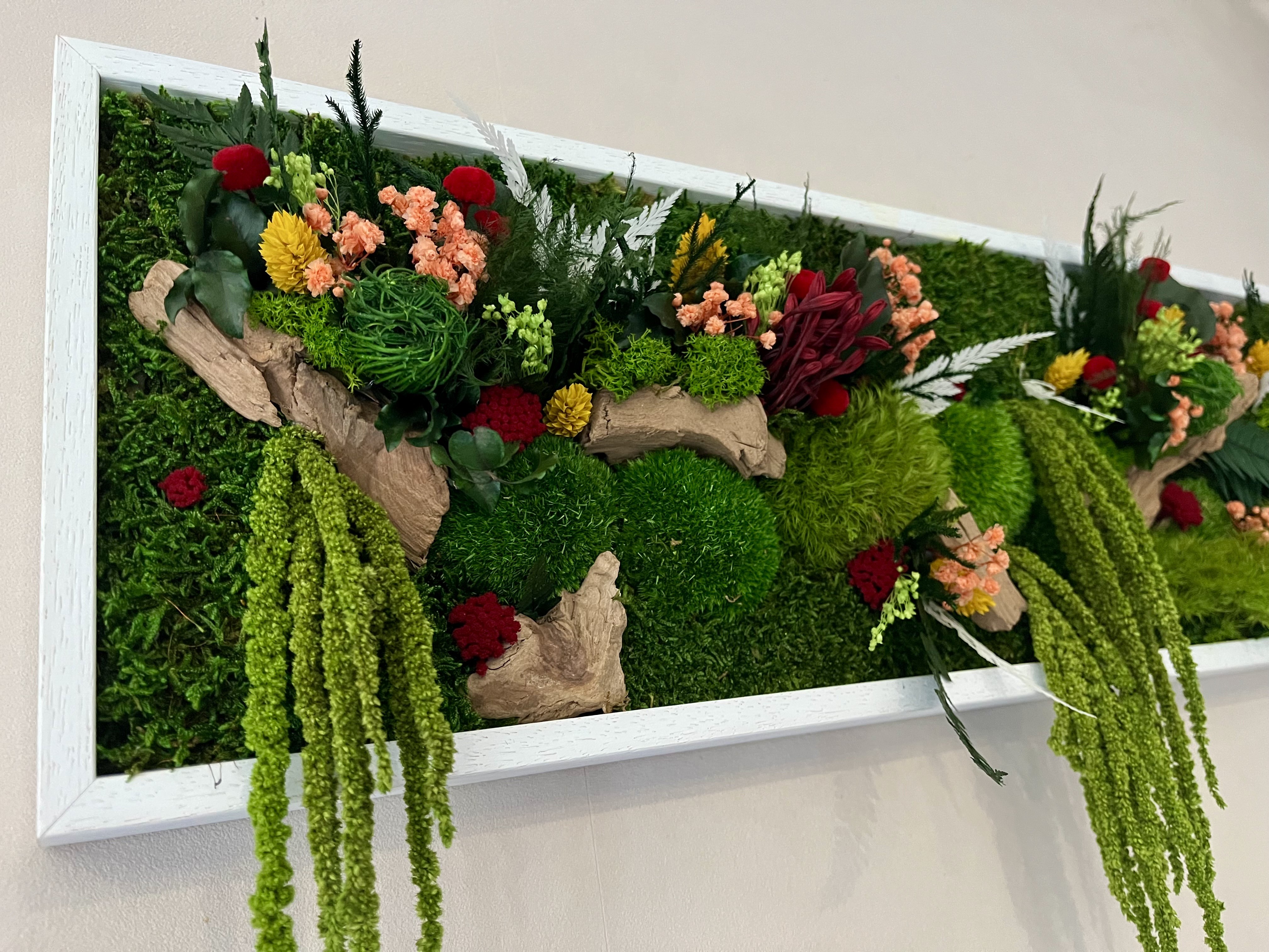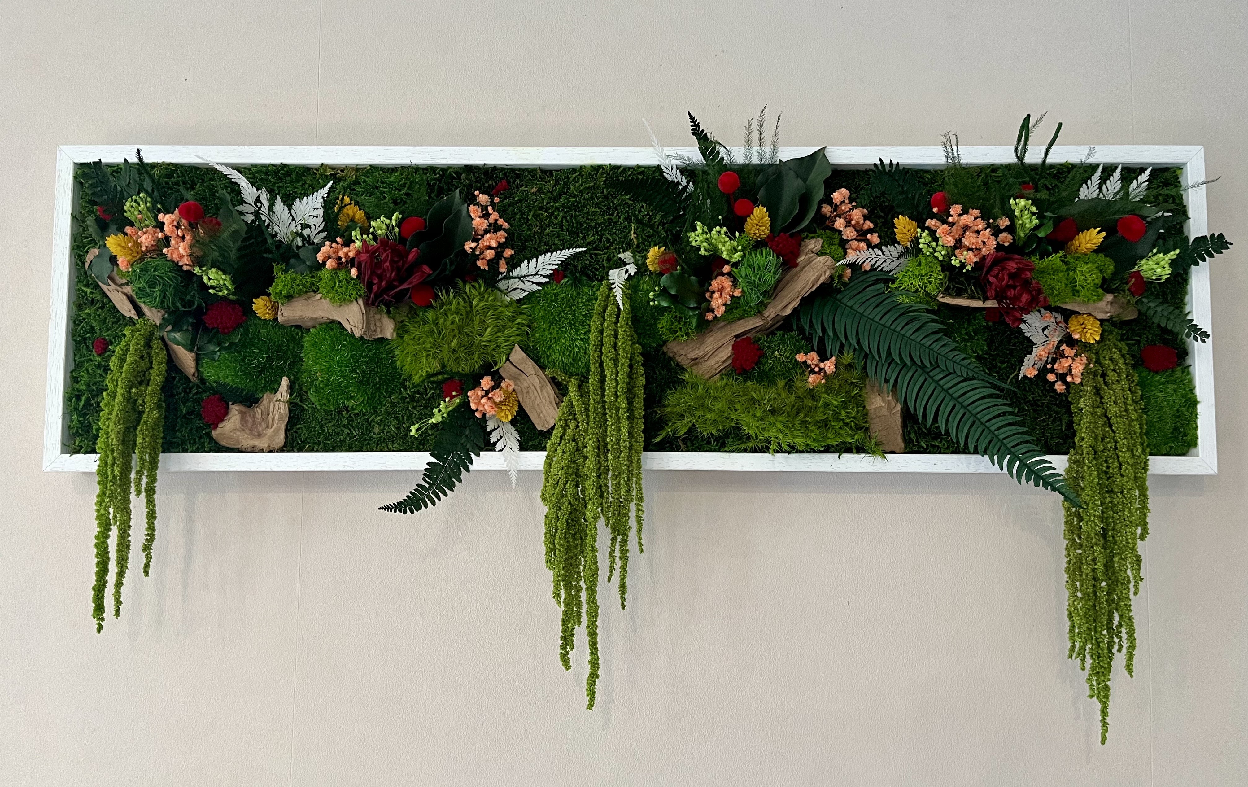 ? Ce tableau ne nécessite aucun entretien et surtout pas d’eau , car ce sont de vrai plantes stabilisées.